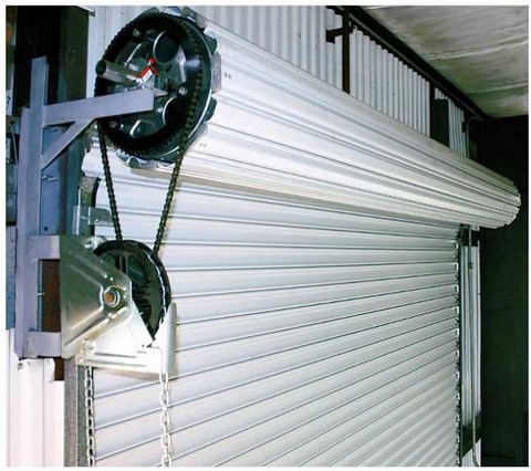 Une armoire à télécommande peut être installer sans difficultées particulière, le plus souvent il s'agit de moteurs GAPOSA spécialement conçus pour ce type de porte et particulièrement sur des rideaux métallique enroulables. La porte de garage sur la photo ci contre est munie d'une chaine pour manoeuvrer le rideaux manuellement, par un treuil placée sur un réducteur pour montée ou déscente, elle peut être pourvue d'une motorisation à télécommande, et d'une manivelle de secours.